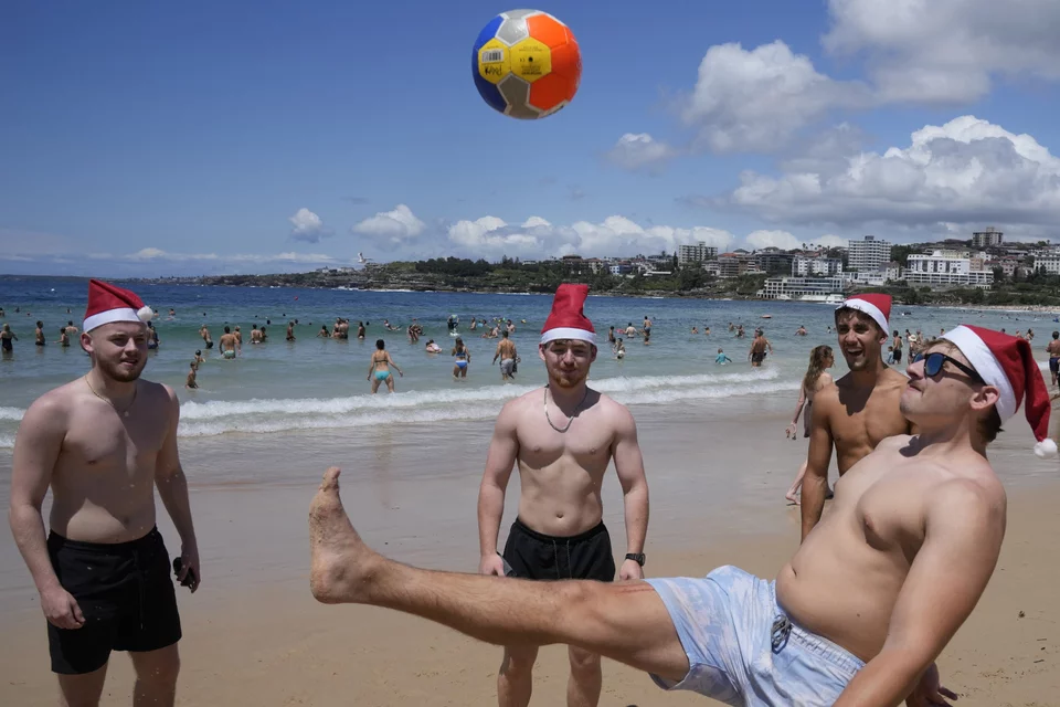 Στην παραλία Μπόντι στο Σίδνεϊ της Αυστραλίας, κάτοικοι και ταξιδιώτες απόλαυσαν τον ήλιο. Άλλοι με σκουφιά και άλλοι με κόκκινα μαγιό χάρηκαν ξεχωριστές στιγμές με οικογένεια και φίλους την ημέρα των Χριστουγέννων.