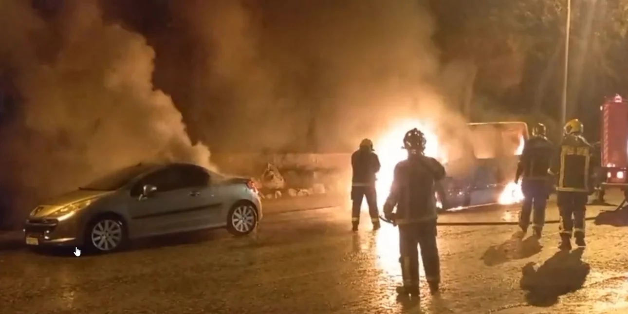 Μάλιστα, σύμφωνα με πληροφορίες, ένα από τα οχήματα που τυλίχτηκε στις φλόγες ήταν σχολικό λεωφορείο.